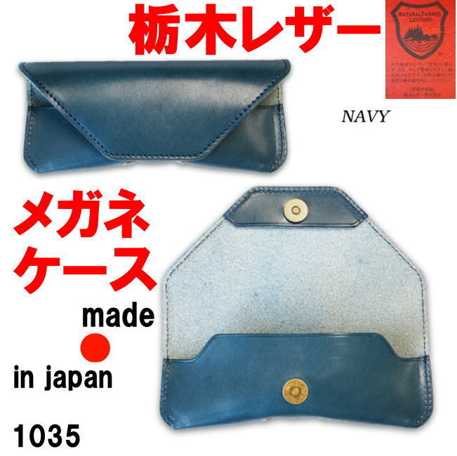 - ネイビー 栃木レザー 1035 眼鏡 メガネケース 牛革 本革 日本製 made in japan