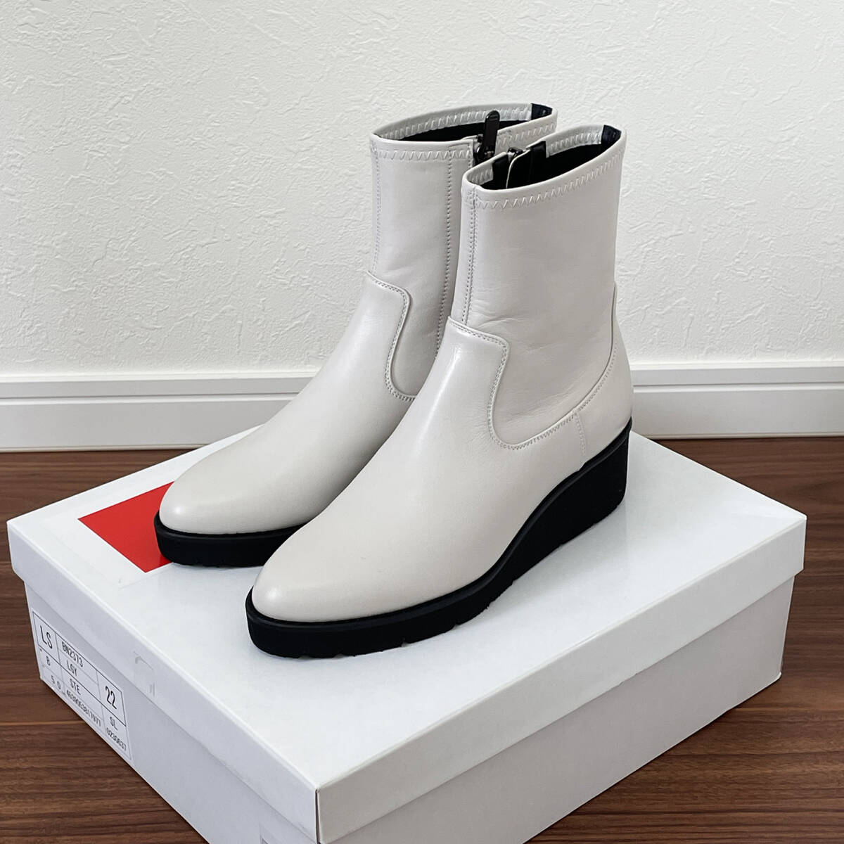 - 新品未使用 銀座かねまつ 本革ショートブーツ 20cmか20.5cm~タイトめがお好みの21cmの方向き ライトグレー 表記21.5cmでも小さめ