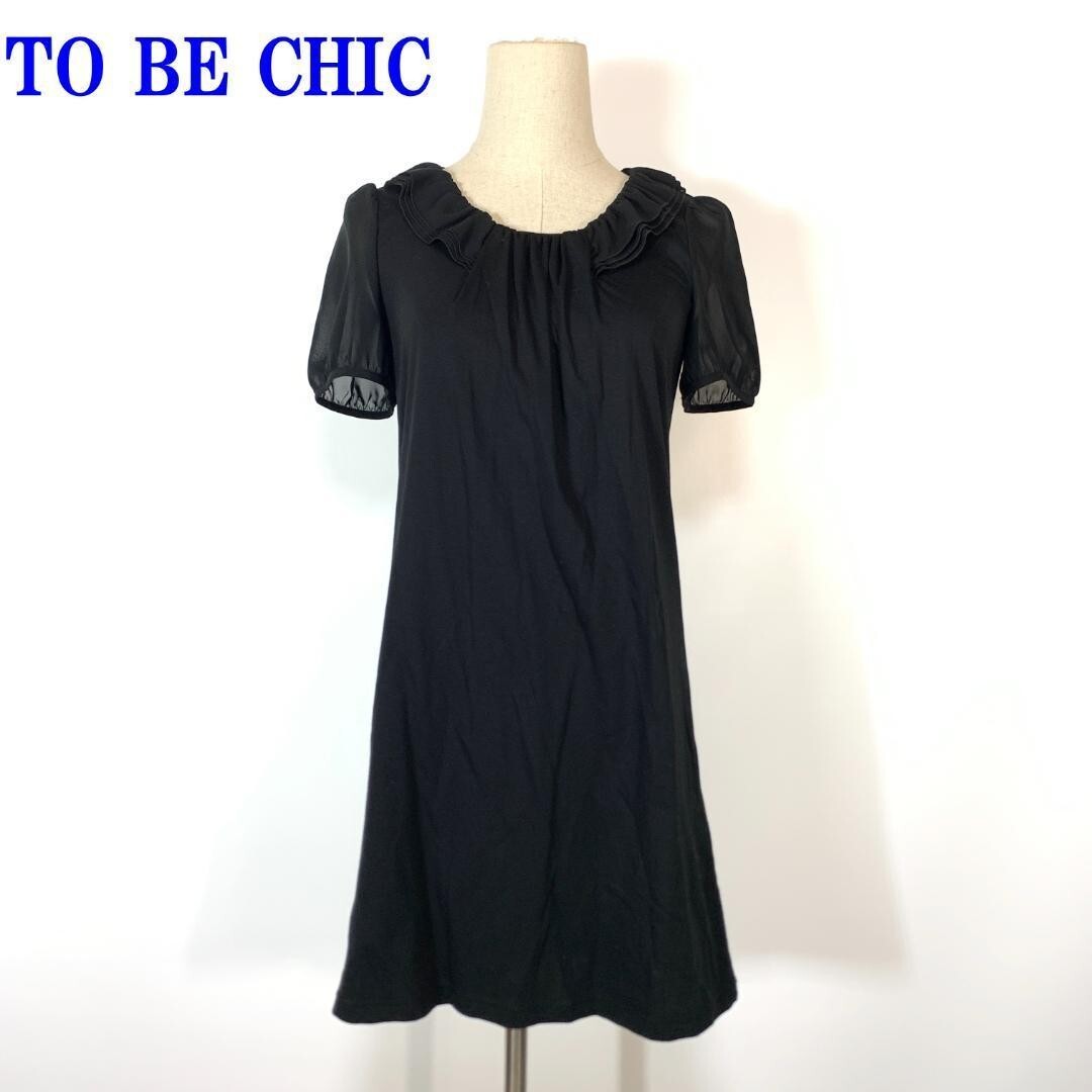 - トゥービーシック 半袖シフォン袖AラインワンピースブラックTO BE CHIC 袖透け感有 ポケット無 フロントギャザー 40 C785