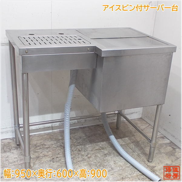 - ステンレス アイスビン付サーバー台 950×600×900 作業台 中古厨房/24E1020Z