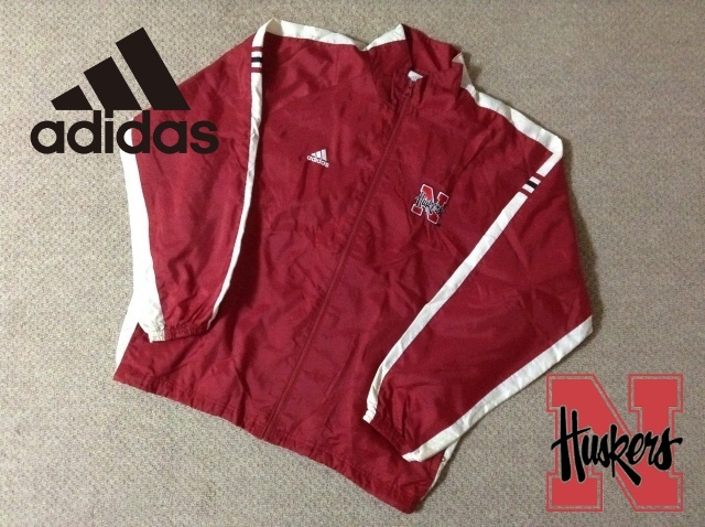 - ★中古★アディダス NCAA ネブラスカ大学 ハスカーズ ウォームアップジャケット バスケ 部活 富永 日本 HUSKERS Nebraska adidas 古着 00s