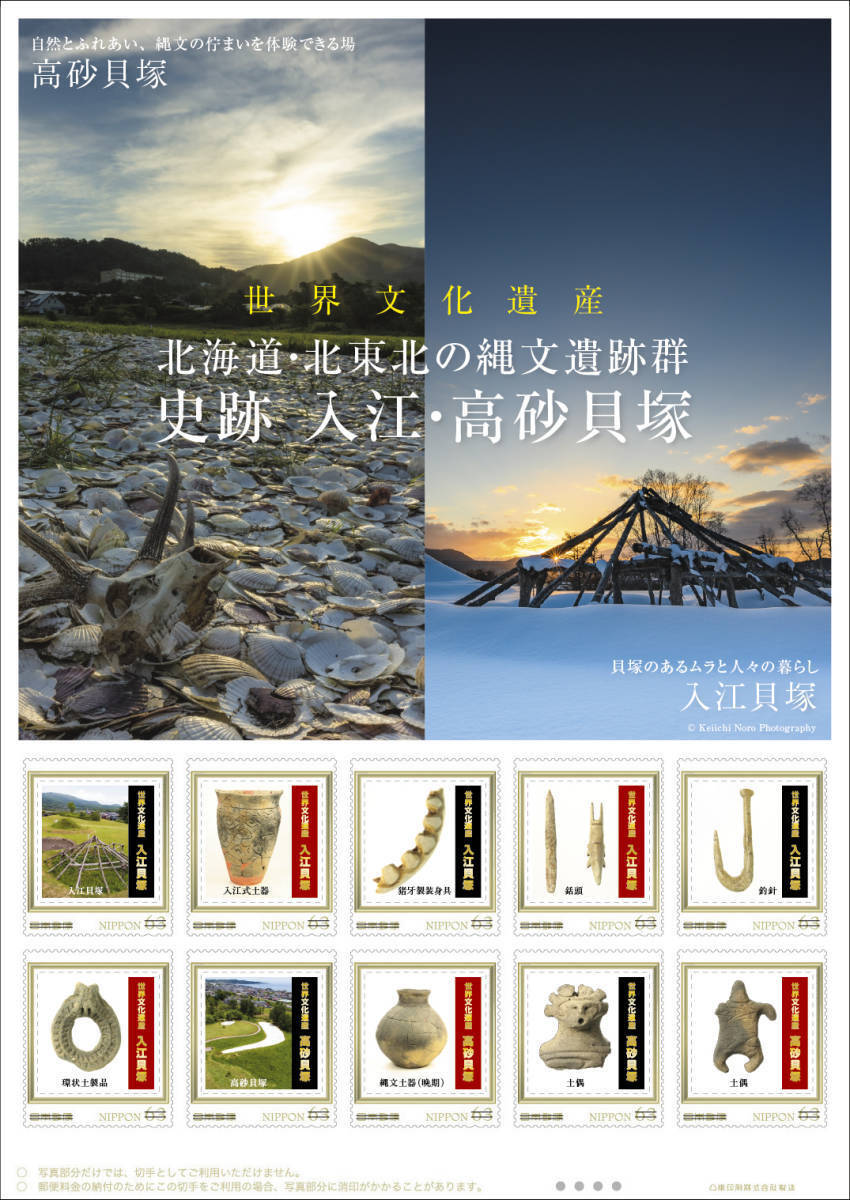 > ☆未開封新品/北海道限定/ユネスコフレーム切手[世界文化遺産 北海道・北東北の縄文遺跡群 史跡 入江・高砂貝塚]63円記念切手コレクション