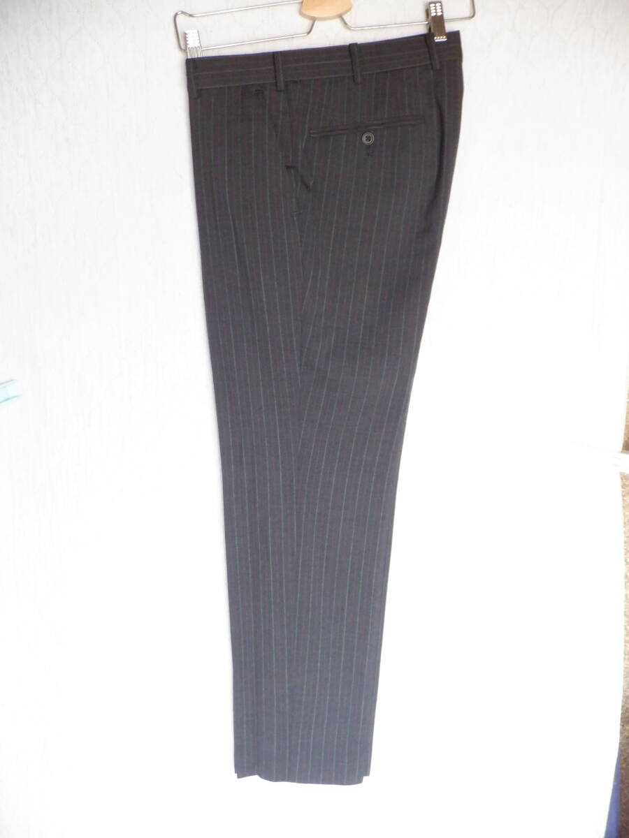 - 夏物 ズボン スラックス チャコールグレーに淡いストライプ 毛 98% ウエスト 78-80cm 股下 70cm