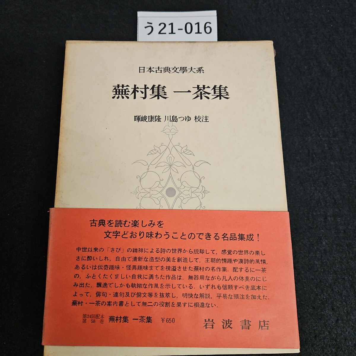 - う21-016 日本古典文學大系 第58巻 蕪村集一茶集 暉峻康隆 川島つゆ 校注 岩波書店