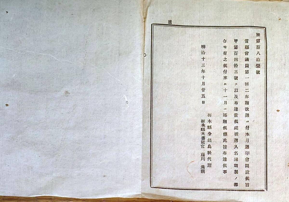 - f24070911〇明治布告布達 県会議員改選 栃木県 明治13年〇和本古書古文書