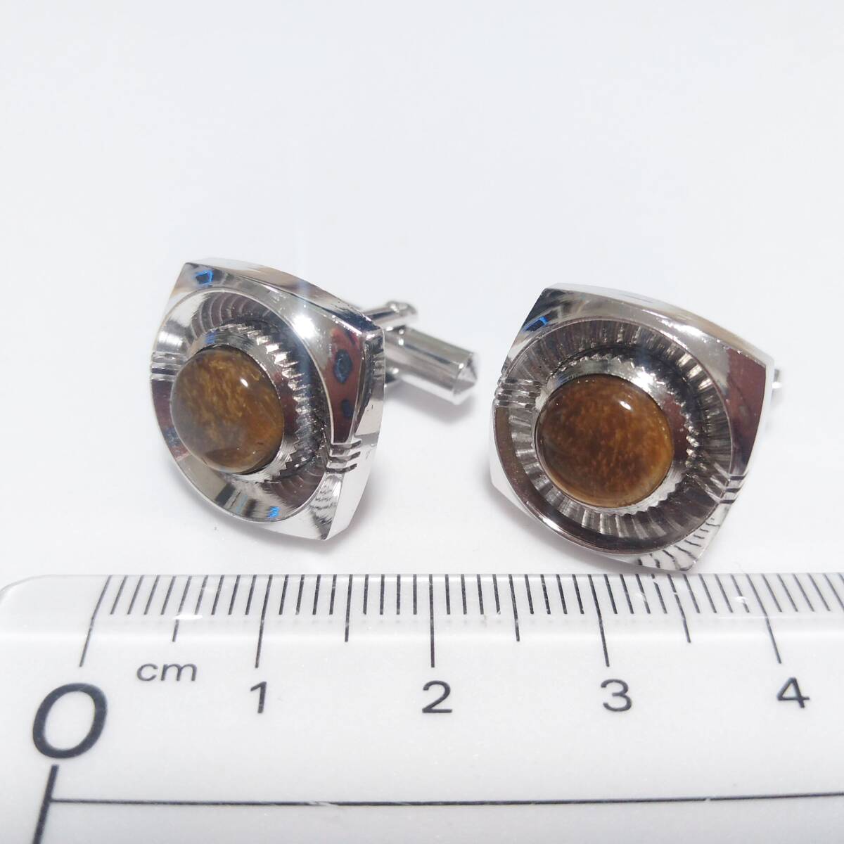 > ◆CF164/カフリンクス/カフスボタン/シルバー/レバー式/スウィヴル式 装飾 イミテーション タイガーアイ アクセサリー 送料無料