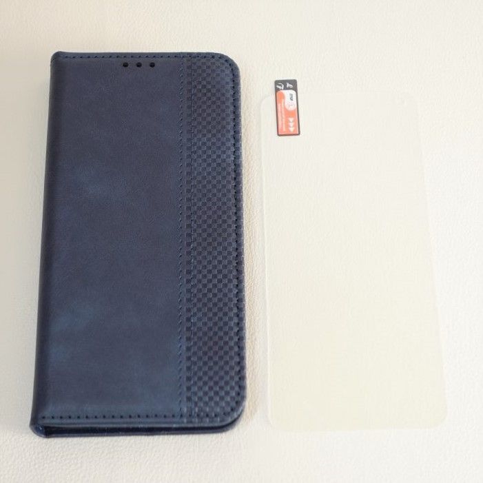 - 【2点セット】OPPO Reno 9A レザーケース「ネイビー」+ブルーライトカットガラスフィルム 手帳型レザーケース 液晶保護 スマホケース