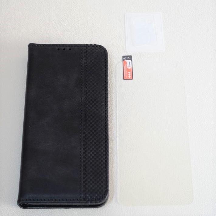 - 【3点セット】OPPO Reno 7A レザーケース+ブルーライトカットガラス+カメラガラス 手帳型レザーケース 液晶保護 レンズ保護