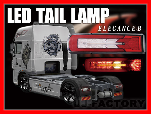> 【送料無料】ECE国際認証E6取得/ベンツタイプ エレガンスB(24V)フルLEDテールランプ/流れるウィンカー★汎用タイプ/1年保証