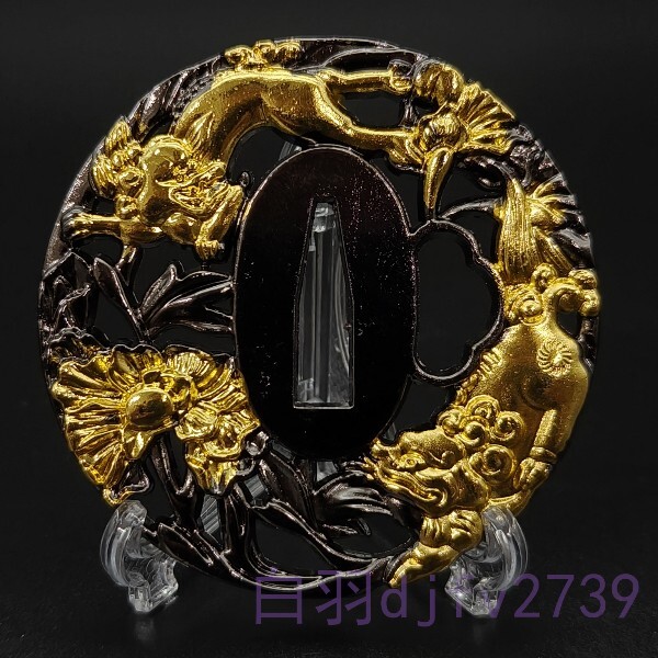 > SY54 日本刀装具 刀鍔 獅子牡丹図 合金製 現代品 つば ツバ 刀剣美術 重さ約118G 厚さ約6mm
