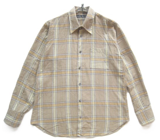 > 美品イタリア製!!マリオ マッテオ MARIO MATTEO*SHIPS購入 美シルエット 長袖チェック柄シャツ M ブラウングレー シップス