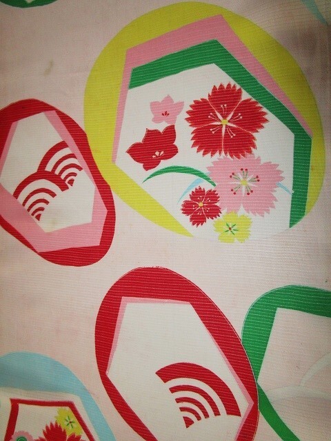 > E-56★薄ピンク*撫子*菊*桔梗*人絹*絽*古布はぎれ★文化人形/一閑張り/吊るし雛/市松人形