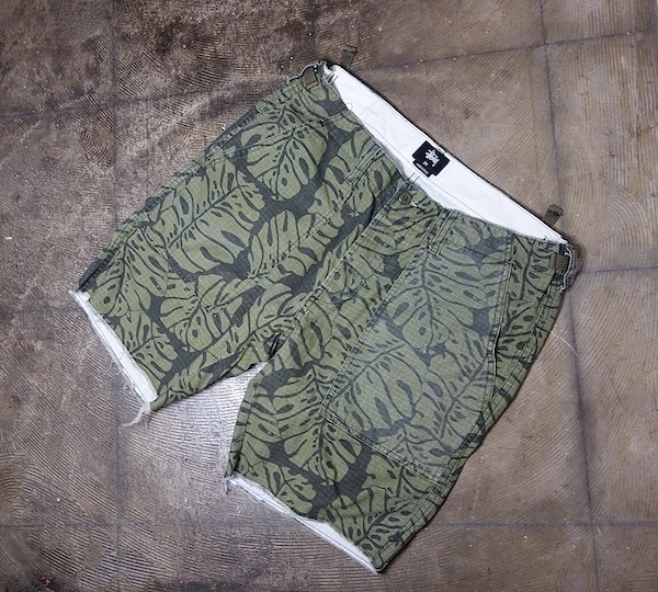 > TK 美品 ステューシー STUSSY リーフ迷彩 リップストップ ベイカーパンツ 軍物 ミリタリー 34 ハーフパンツ ショートパンツ