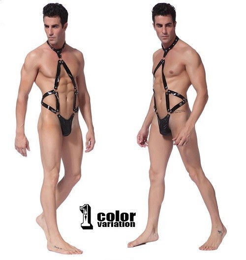 - 匿名発送 送料無料 Tバックメンズ コスチューム SM 束? エナメル レザー コスプレ ボンテージ 拘束衣 ボディースーツ H0041