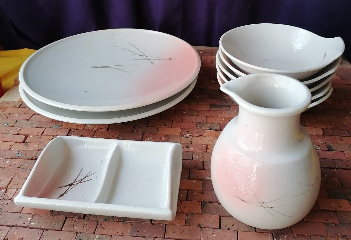 - 蕎麦徳利 パスタ皿 2枚セット ・陶器・ピンク色がふんわり入った ・大皿 カレー皿 用途色々 和食器セット