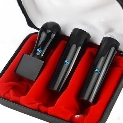 - ミラーチタンブラック 法人印鑑 3本セット 寸胴2本 天角1本 ケース付き サイズ選べる