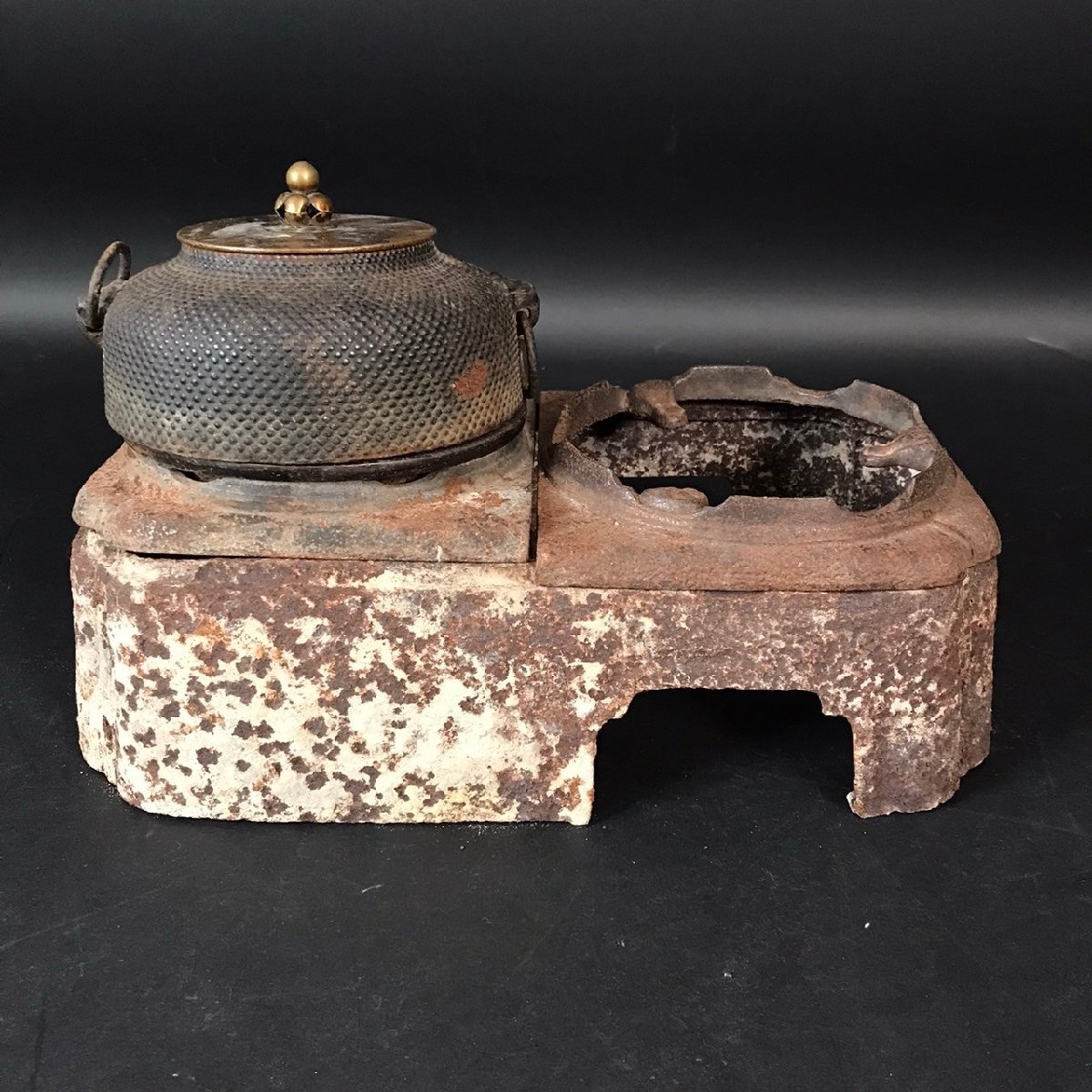 - ER0708-12-4 龍文堂 五徳 鉄壷 骨董 時代物 煎茶道具 茶釜 火鉢 囲炉裏 鉄瓶 アンティーク H16cm 口径8.5cm 100サイズ