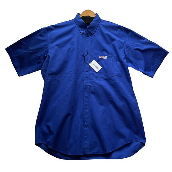 - 【新品】BALENCIAGA ポケットロゴ 半袖 シャツ ブルー 38