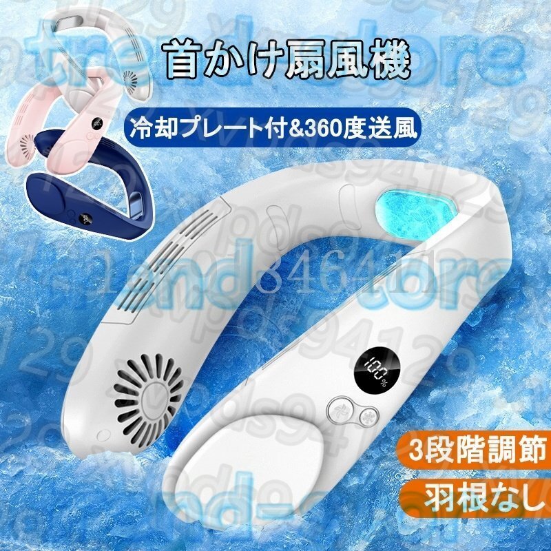 - 扇風機 羽なし 首かけ扇風機 首掛け扇風機 ネッククーラー 軽量 携帯扇風機 LCD液晶 ディスプレイ USB充電 4400mAh 3段風量 冷感 ひんやり