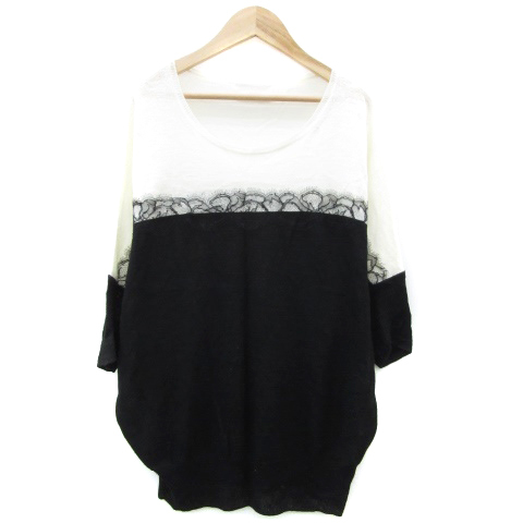- アクアガール aquagirl ニット カットソー 七分袖 ラウンドネック レース 麻 リネン混 オフホワイト 白 ブラック 黒 /YM19 レディース