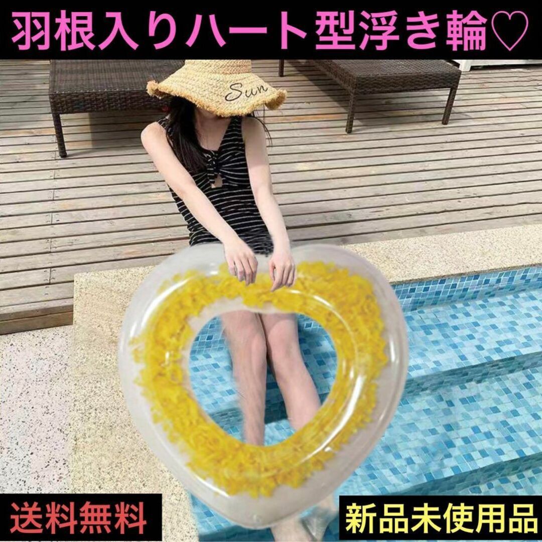- 浮き輪 女性 かわいい 80-90 ハート型 羽根入 大人 子供 プール 海 海水浴 夏休み 映え 浜辺 ナイトプール SNS Instagram インスタ Twitter