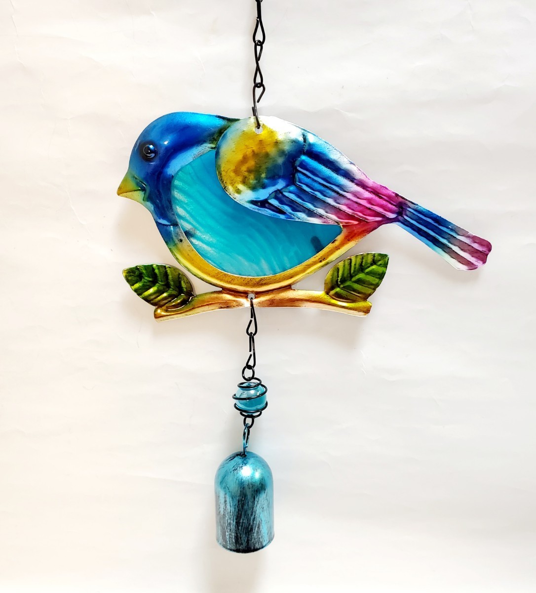 - 青い鳥の風鈴 ウィンドチャイム レトロ ドアチャイム ステンドグラス 鳥の雑貨 HANAKO