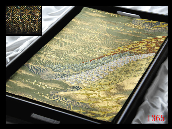 - I365厳選西陣 名門【じゅらく】 振袖可 飛鶴古典紋 千歳緑色地 六通正絹高級美術袋帯 新品同様 ◇検◇簪着物名古屋帯帯締め