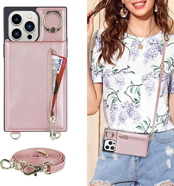 - iPhone 14 Pro 6.1(2022)スマホ 携帯 用 ケース 背面ポケット付き 携帯ストラップ 肩掛け 斜めがけ iPhone 14 Pro【ピンク】