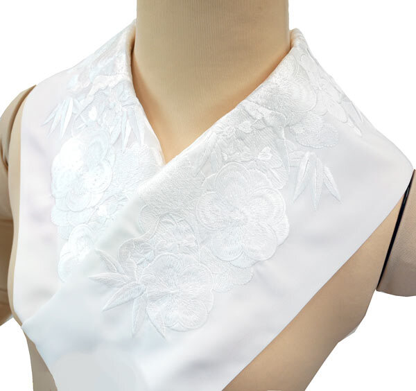 - 刺繍半襟 白地 梅柄 he-419 メール便対応 振袖 訪問着などに 半エリ