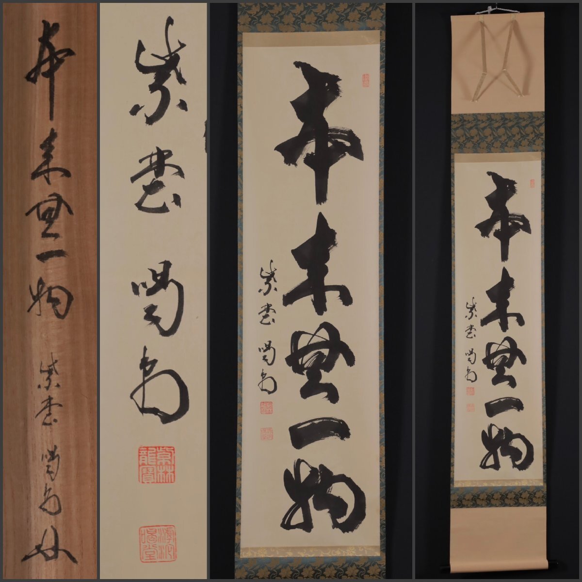 > 【模写】吉】11089 細合喝堂 書「本来無一物」 共箱 臨済宗 大徳寺 龍源院前住職 仏教 茶掛け 茶道具 禅語 掛軸 掛け軸 骨董品