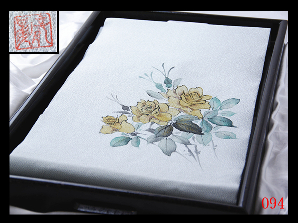 - O94厳選西陣 縮緬 作家物 手描き友禅染め 草花文様水色地 極上逸品 高級美術名古屋帯 新品同様 ◇検簪名古屋帯締め