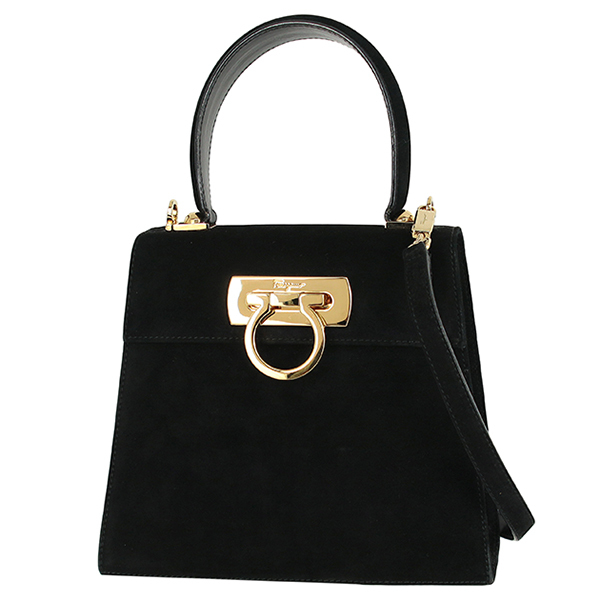 - フェラガモ ハンドバッグ ショルダーバッグ 2WAY ガンチーニ スエード ブラック 3114