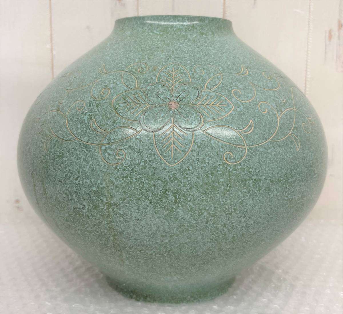 - 伝統工芸 工芸品 工芸美術 *峰雲 峰雲作 青銅製 草花彫 花瓶 花入 花生 フラワーベース 鑑賞壺 茶道 茶道具 和室 インテリア 古道具