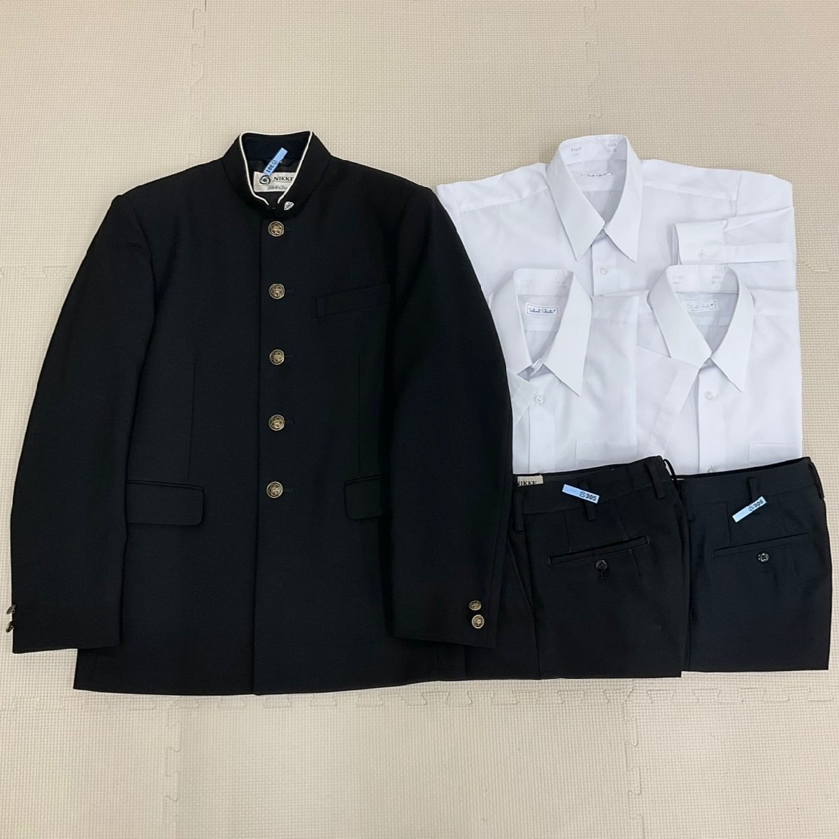 > U943/S1293(中古)神奈川県 大楠中学校 6点 /旧制服/校章付/学ラン:160A/シャツ:165A/ズボン:W70/黒/ラウンドカラー/NIKKE/加工あり/卒業生