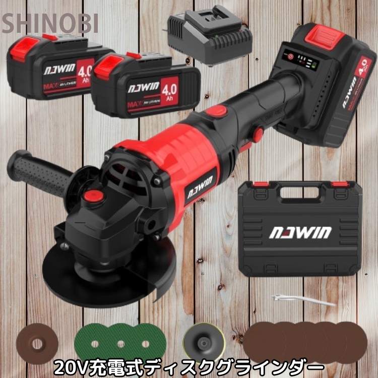 > 20V充電式 コードレス ディスクグラインダー バッテリー2個付き 三段階変速 砥石Φ100mm 切断/削/研磨 取説 収納ケースも付属