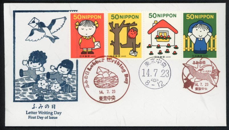 - 1177 【FDC】2002ふみの日(50円)[東京中央/14.7.23/鳴美版](解説書なし)
