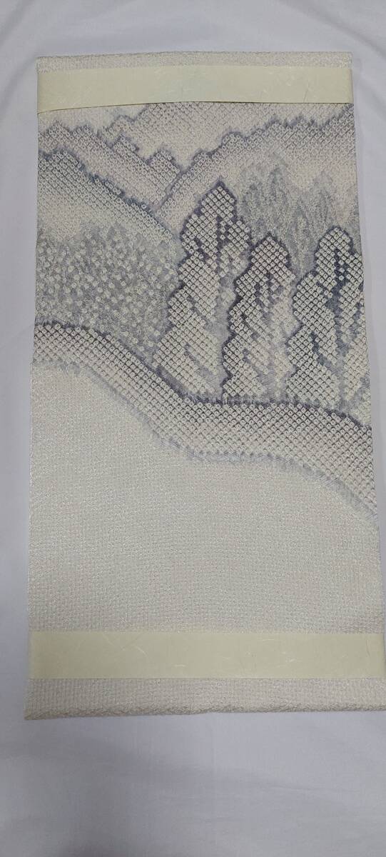 - 【桐輪】九寸帯☆送料無料*白地*手絞り.木立*逸品物*新品*美品{正絹*白色.手絞り地*九寸名古屋帯}白地*四ツ巻手絞りの木立*太鼓柄*№4213