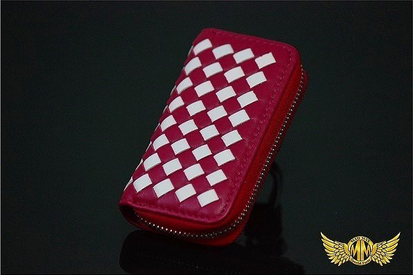 - カー用品 スマートキーケース チェック柄 レザー カルビナ付き レッド/ホワイト/父の日 母の日 プレゼント 【メール便送料210円】