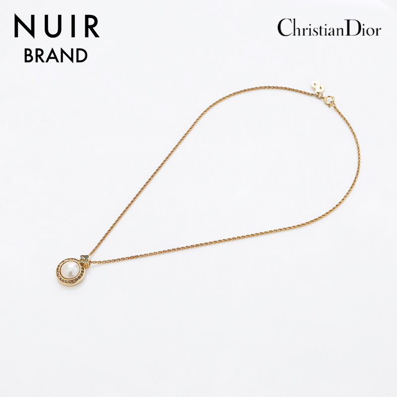 - クリスチャンディオール Christian Dior ネックレス パール ラインストーン ゴールド