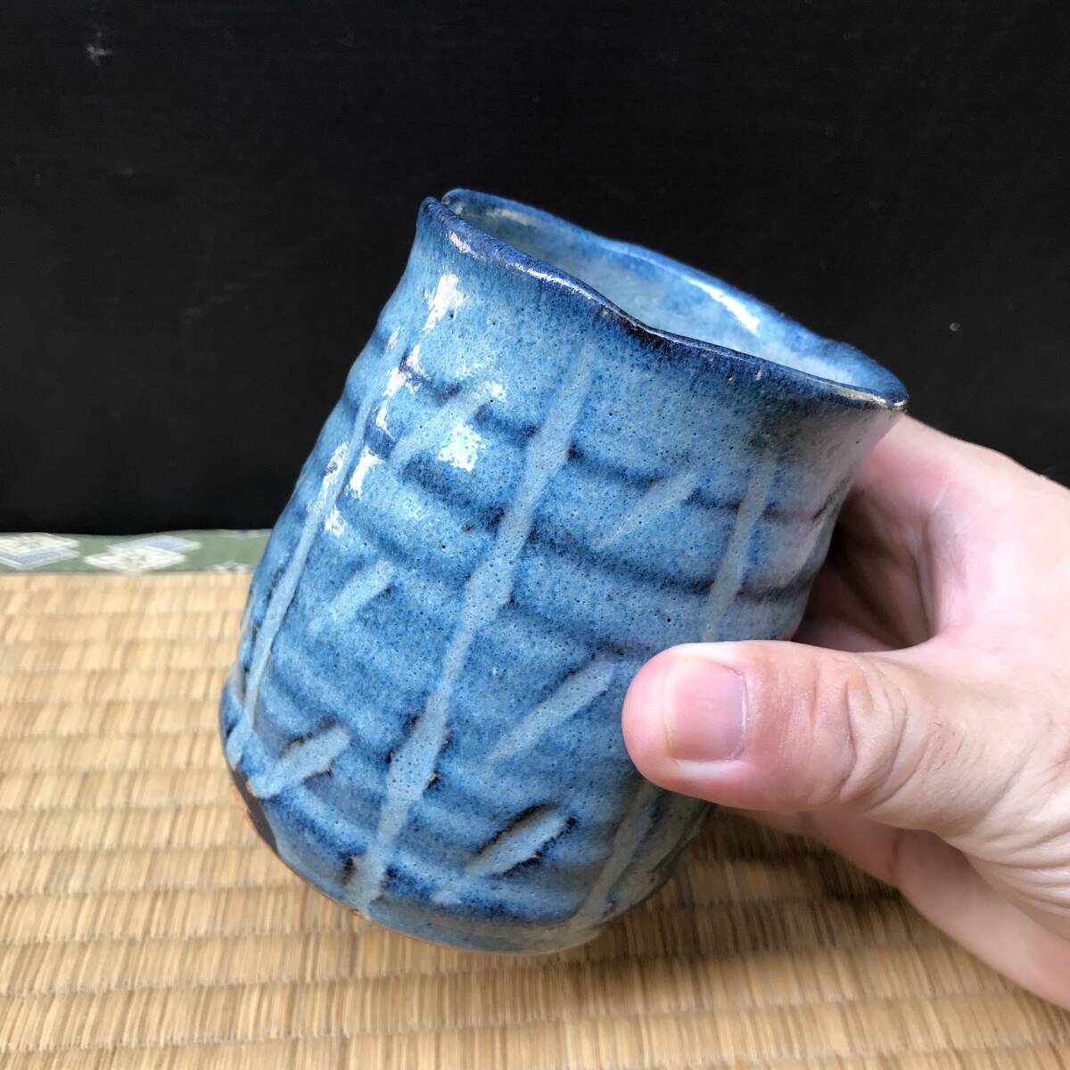 > ねずみ志野の湯呑み、ぐい呑み、作家物?酒器 猪口 小鉢 ぐい飲み 盃 杯 珍味入れ(R60802_B)