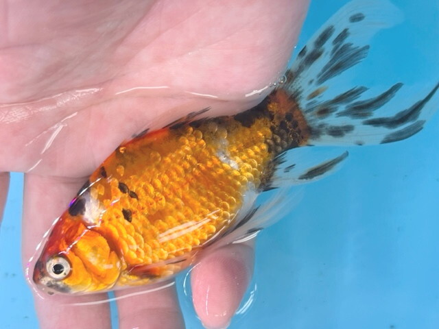 - 福嘉金魚 動画あり!SPRING FAIR! GSB-18 ⑧-1 墨ばっちり! 綺麗な変わり柄 銀鱗朱文金 長尾産 約13~16センチ 当歳 現物 1匹 滋賀