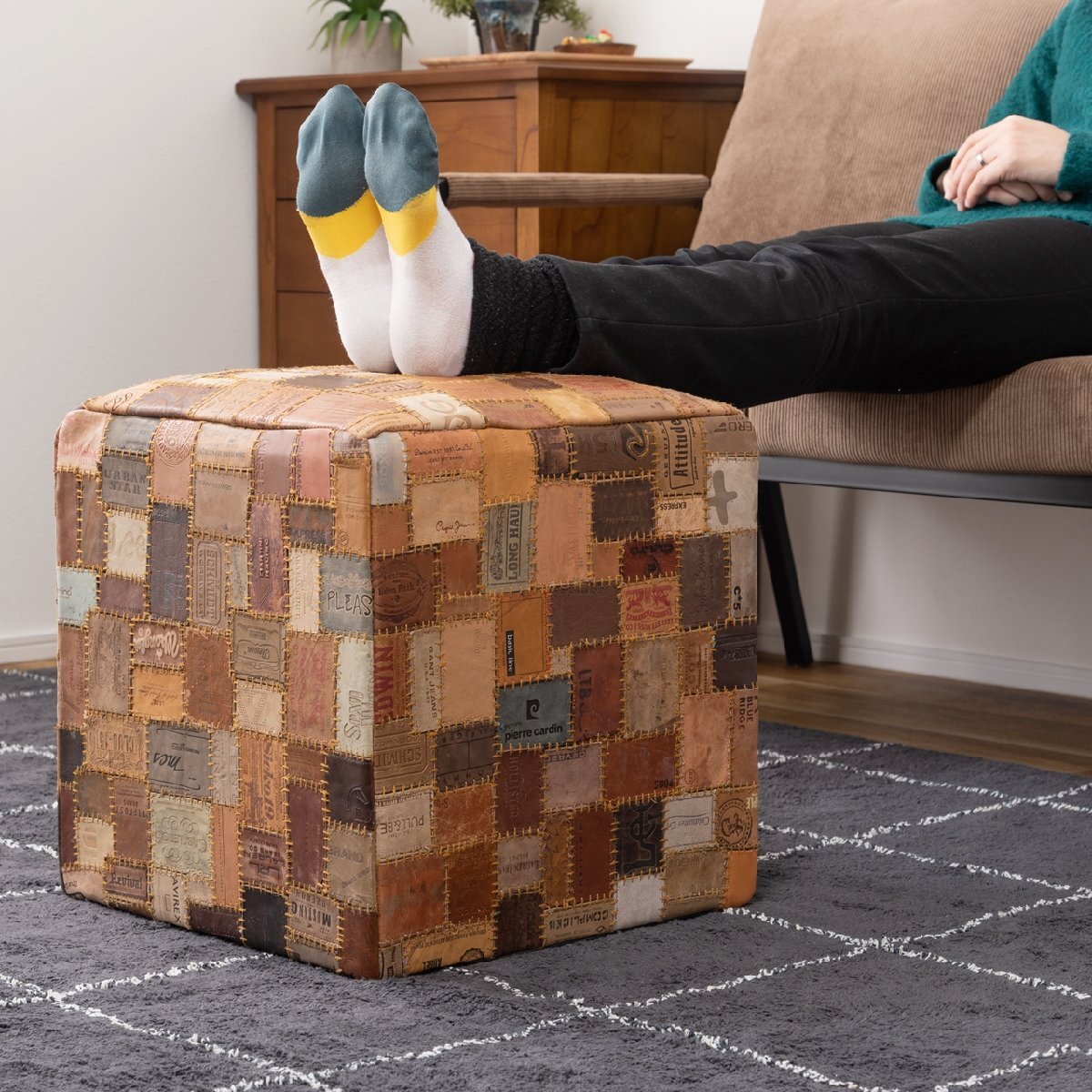 - スツール 椅子 チェア 簡易椅子 来客 かわいい おしゃれ パッチワーク キューブ キューブスツール FAB-007