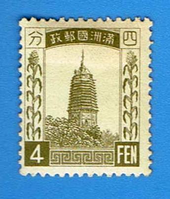 - 満州 普通切手 4分 4FEN 満州国郵政 裏のりきれい ヒンジ跡 多少の折れ すかしは無し 未使用