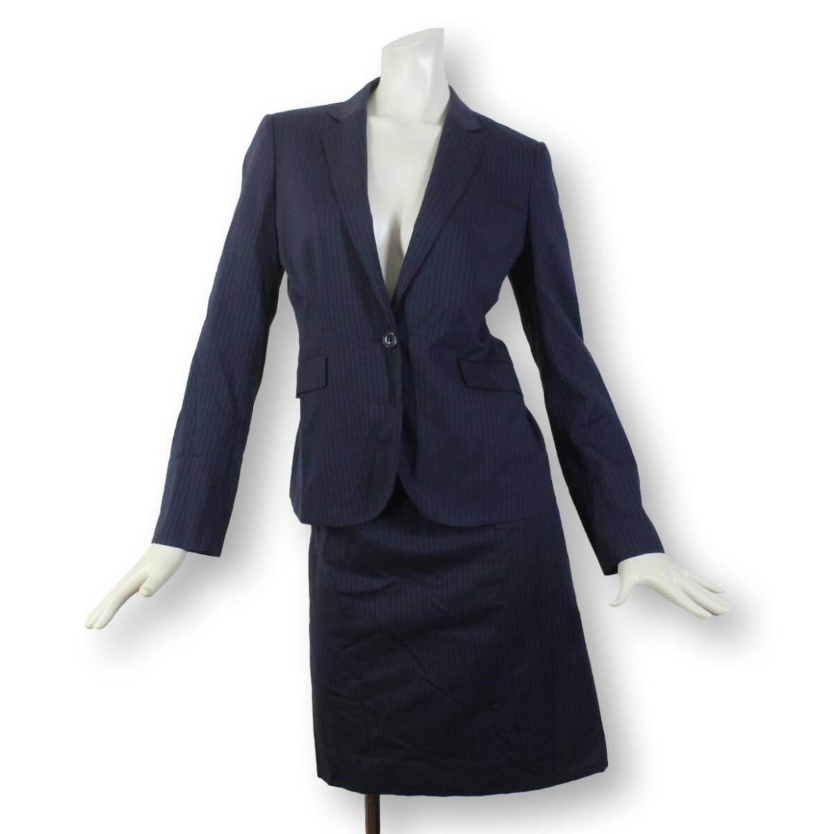 > 07【美品】オリヒカ ライム スカートスーツ 上9 下7 ネイビー 紺 上M 下S シャインストレッチ ビジネス tqe ORIHICA RHYME 春夏秋 ★美品★