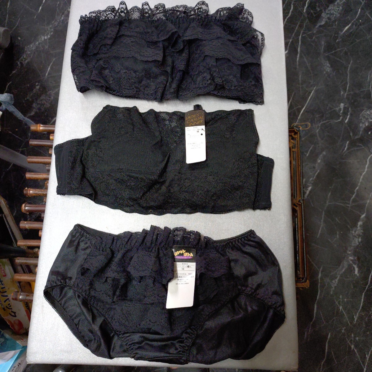 - Mサイズ 黒 サンプル品3点 チューブトップレースブラ2点と レースショーツ1点