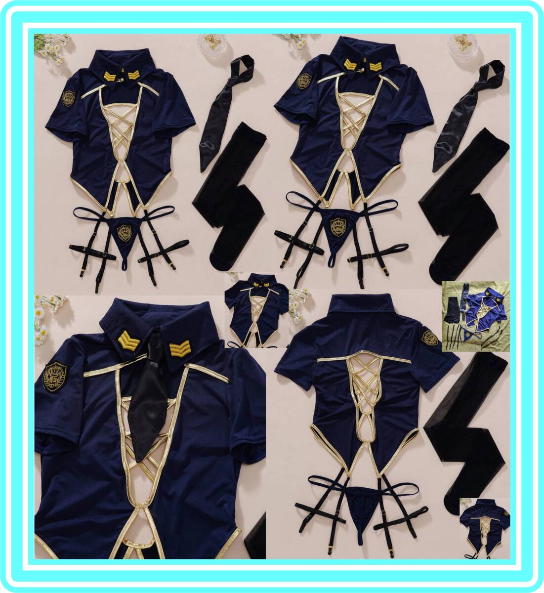 > ★超素敵★フライトアテンダント風(ポリス風かも)★コスチュームセット★ガーター風デザイン★大人可愛い★ストッキング付★H173