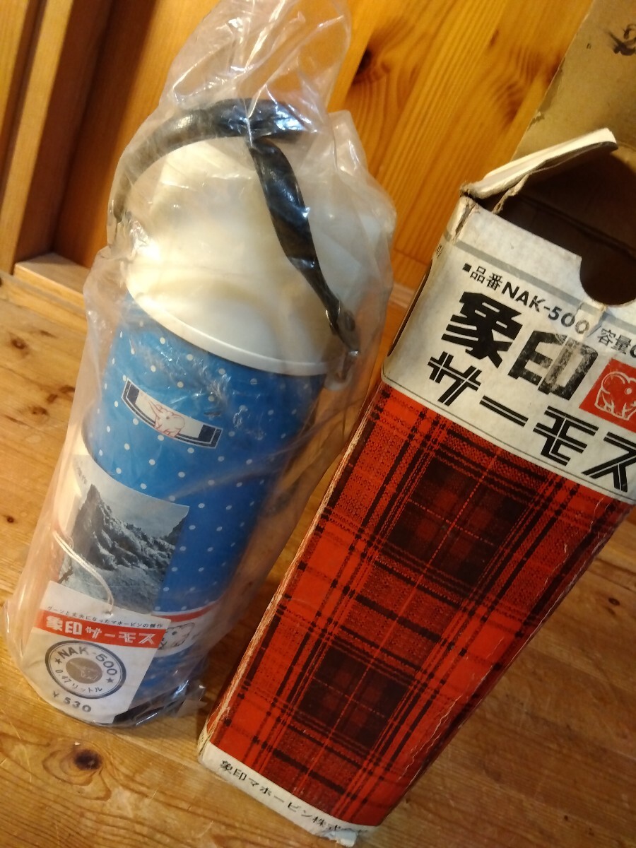 - 昭和レトロな真空ガラス魔法瓶、昭和40年代の象印製品、新品未使用元箱入ピカピカ/タグ/帯付き、湯差し/保温水筒/ガラス魔法瓶、#朝来佐嚢#