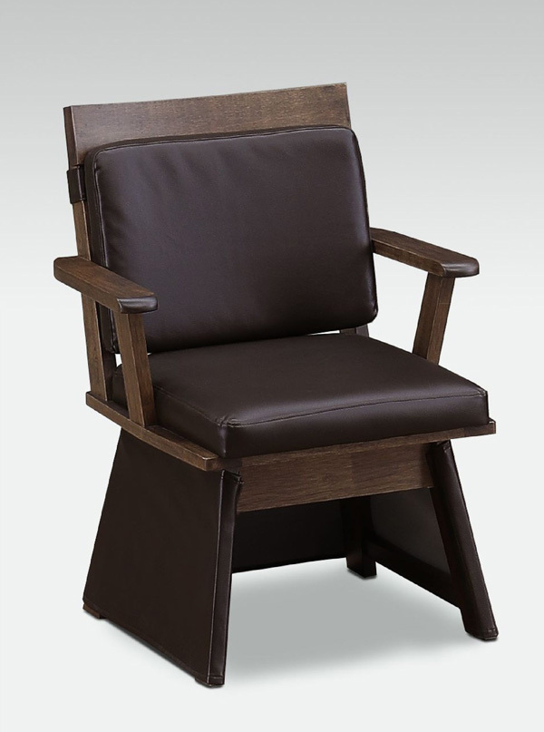 - 木製ダイニングチェアー 食堂椅子肘掛付チェアハイタイプこたつ用 ブラウン色