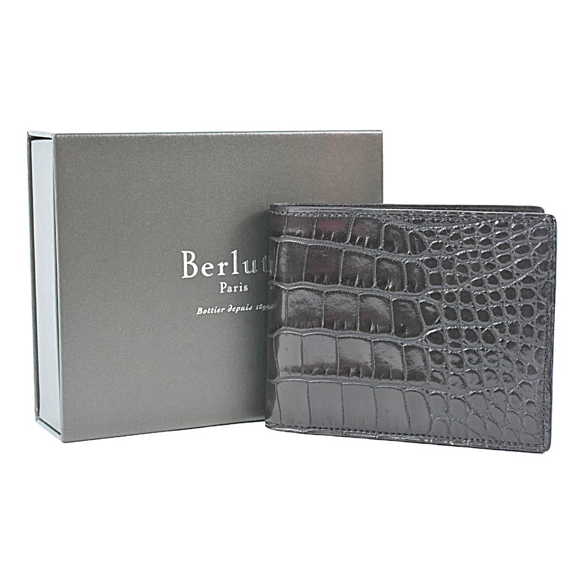 > ベルルッティ超美品 豪華アリゲーター素材 クロコ マコレ コンパクト ウォレット パティーヌ メンズ 2つ折り財布 BERLUTI MAKORE