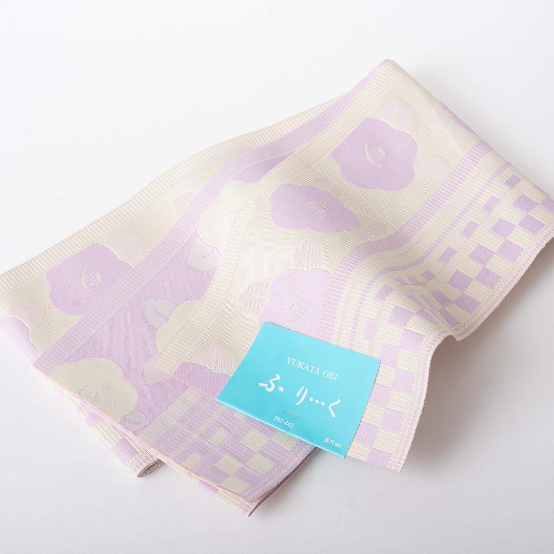 - 【半幅帯】NO.3606 (夏椿・パープル)浴衣帯 袴下帯 単衣帯 長尺